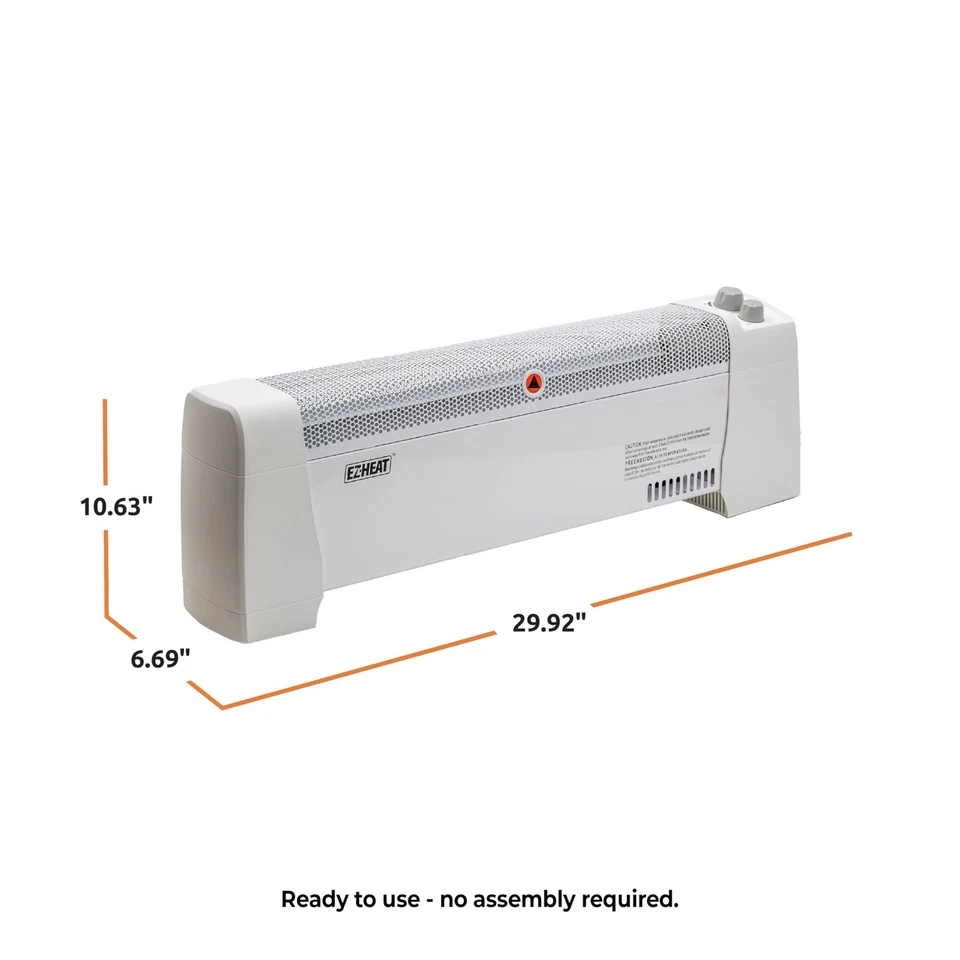 EZ-HEAT 1,500 Watt Baseboard Space Heater with Adjustable Thermostat, Dent-Proof End Panels, Overheat Protection, Tip-Over Switch, & Stay-Cool Body, CZ600