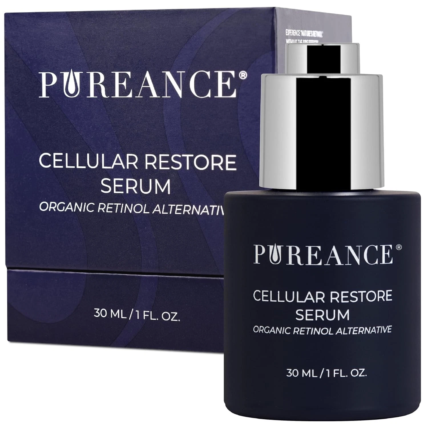 PUREANCE Organic Bakuchiol Retinol Serum – Bakuchiol for Face Skin and Wrinkles – Cellular Restore Serum – With Jojoba Oil, Sea Buckthorn, Camu Camu, Babchi, Maple Leaf Extracts & More – 1 Fl Oz