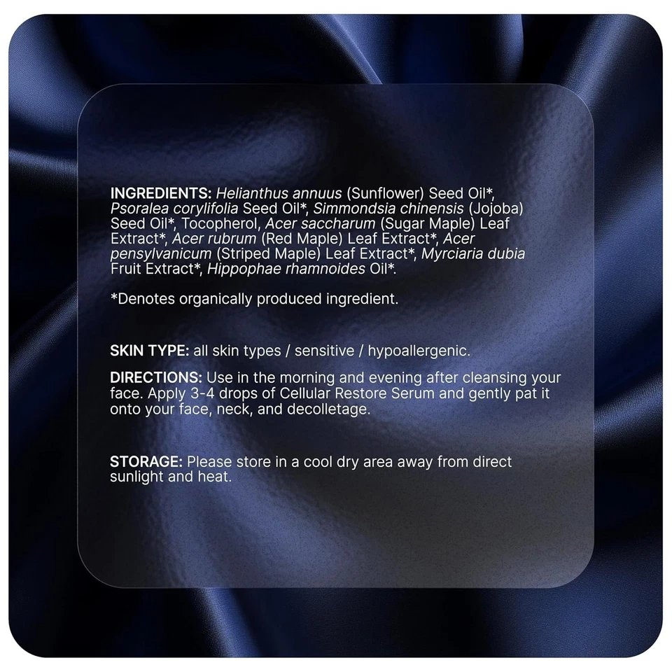 - CLEAN BOTANICAL FORMULA: Cellular Restore features pure babchi oil organic for skin, Vitamin E, and Red Maple extracts in a gentle, plant-based formula suitable for sensitive skin types seeking effective anti-aging care.